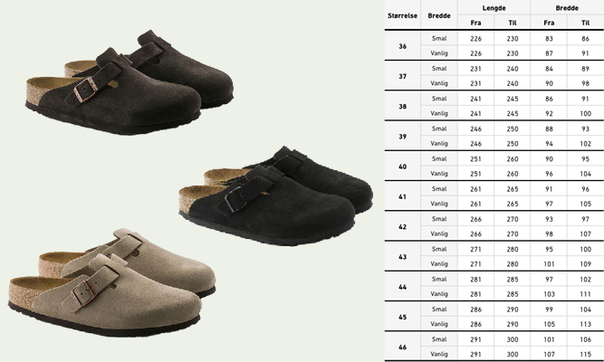 Ta deg god tid til å måle føttene nøye og studer størrelsestabellen godt for å finne den perfekte Birkenstock-passformen for deg.