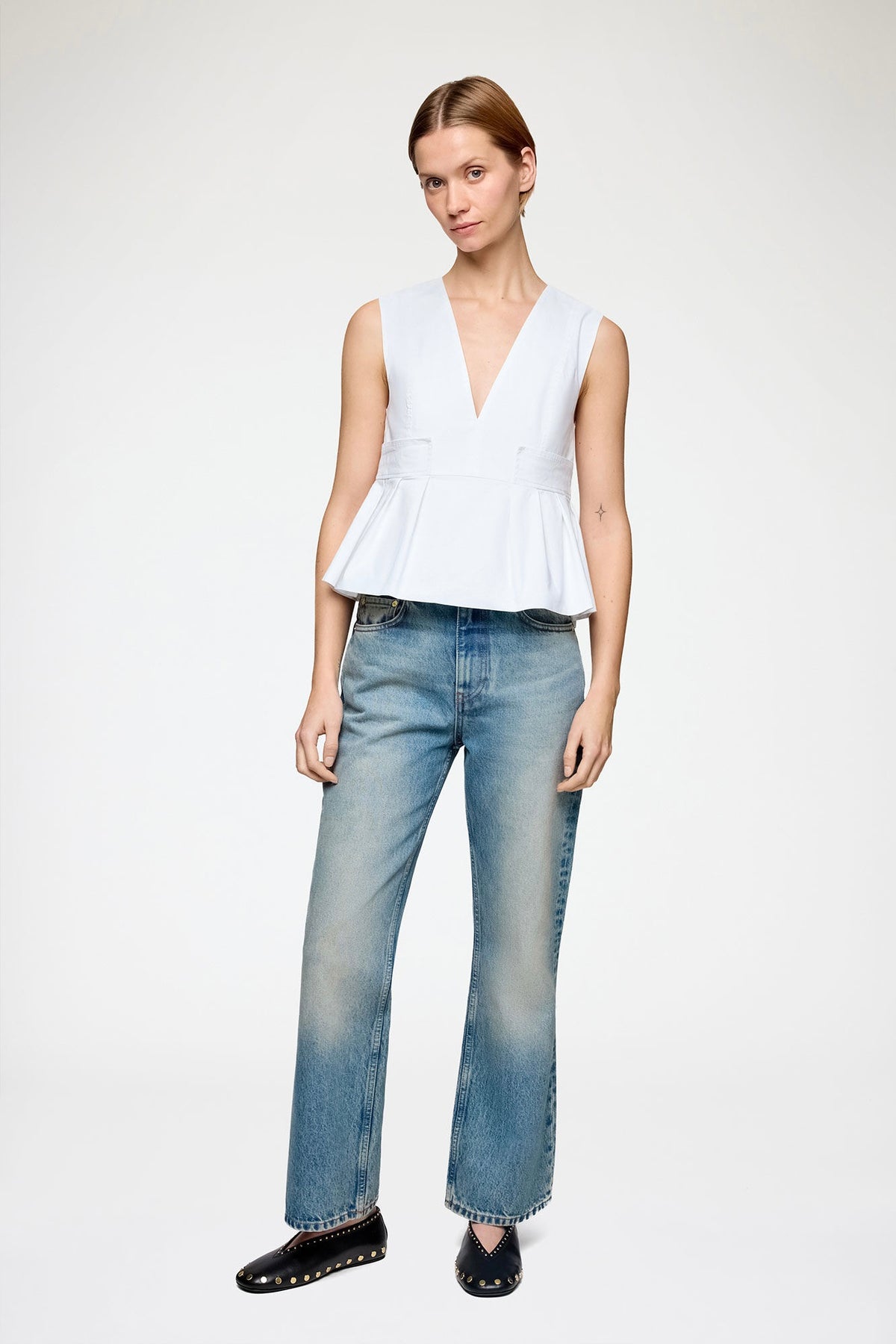 Denne feminine toppen kombinerer moderne design med praktiske detaljer, og er et allsidig plagg du enkelt kan style opp eller ned. Toppen har en flatterende V-hals og ermeløs passform som gir et lett og luftig uttrykk, ideelt for varmere dager eller lag-på-lag styling.