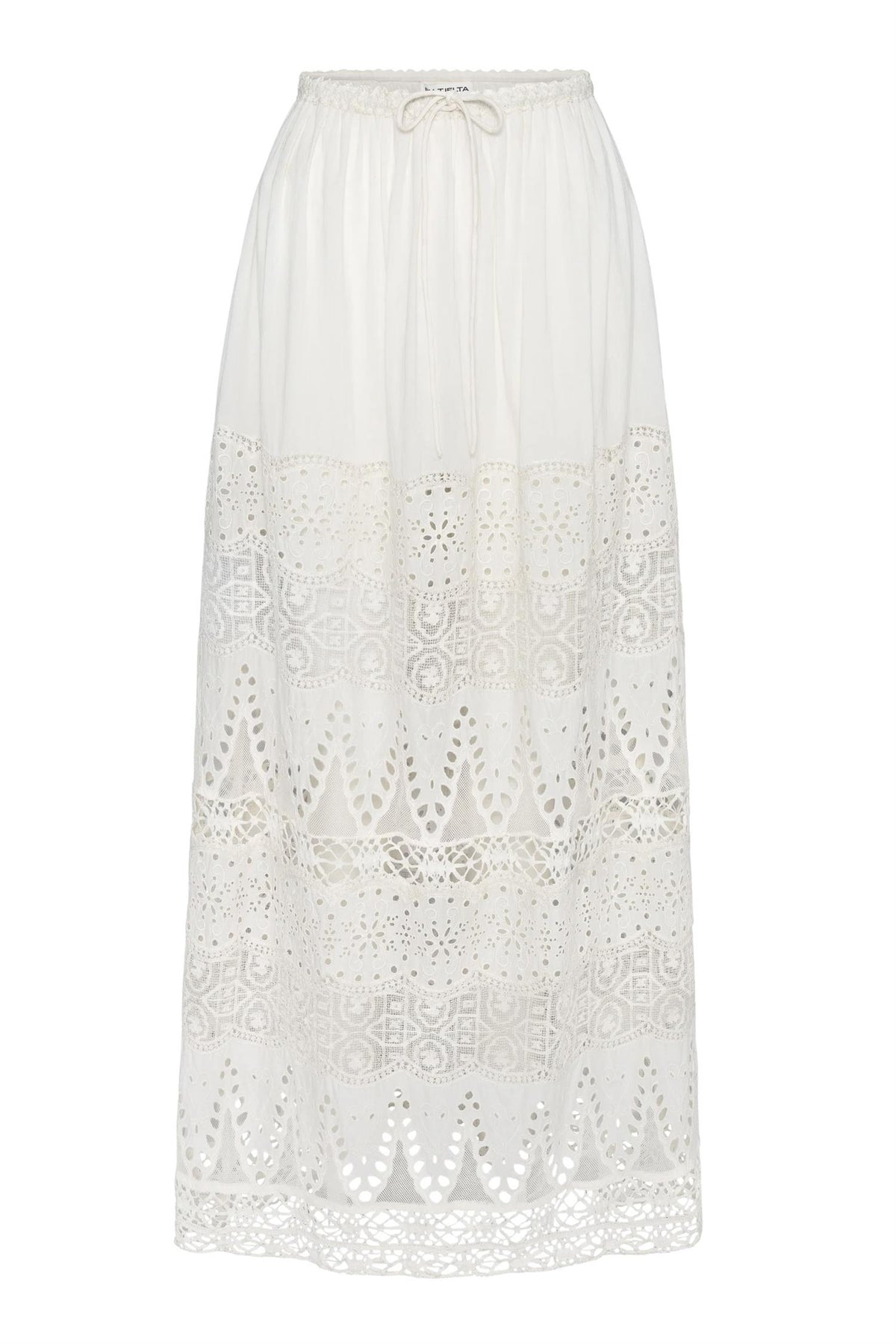 Cannoli Skirt fra Pia Tjelta er et elegant og luftig blondeskjørt med vakre paneler som gir et mykt og naturlig fall.
