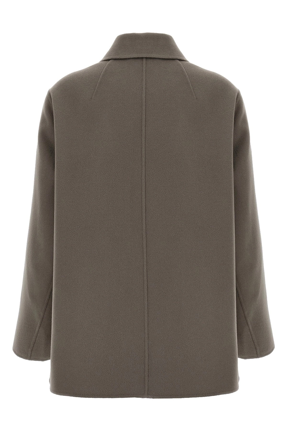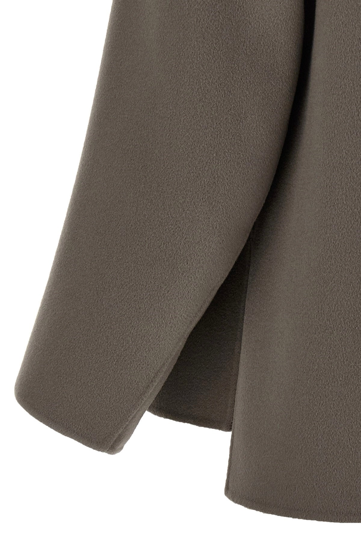 Håndsydd overshirt i ren ull med asymmetrisk snitt og lett, uforet konstruksjon. Tidløs eleganse med moderne preg.