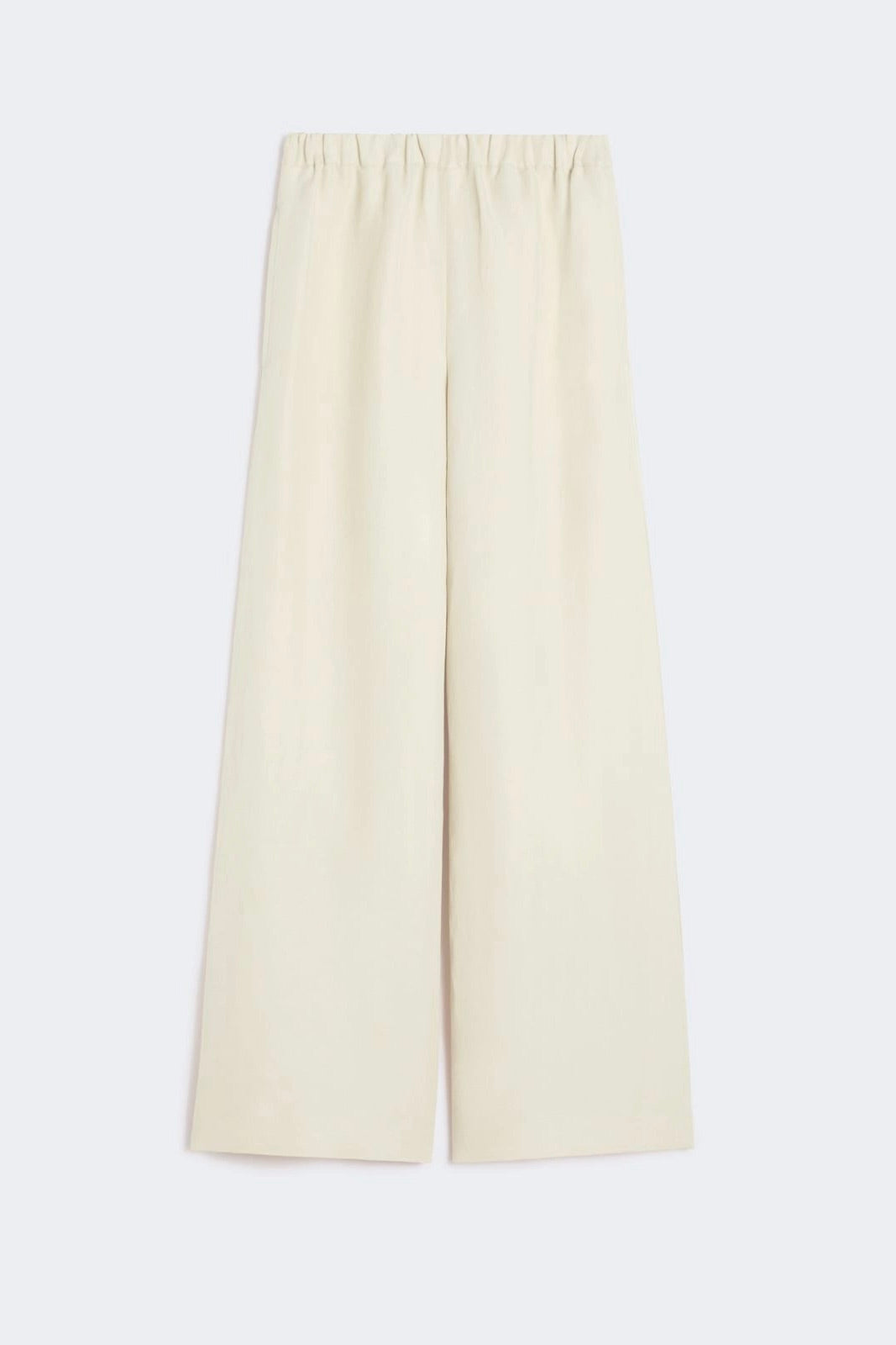 Elegante og komfortable bukser fra Max Mara, laget i en eksklusiv blanding av lin og silke. Den lette twillkvaliteten gir et naturlig fall og en luksuriøs følelse, perfekt for en sofistikert sommergarderobe.