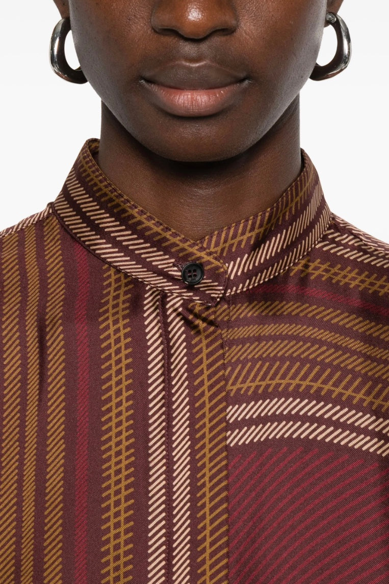 Kjolen kommer i en lekker kirsebærrød nyanse med klassisk stripemønster, og har lange ermer, knappelukking foran og et matchende knytebelte i livet for en feminin silhuett.
