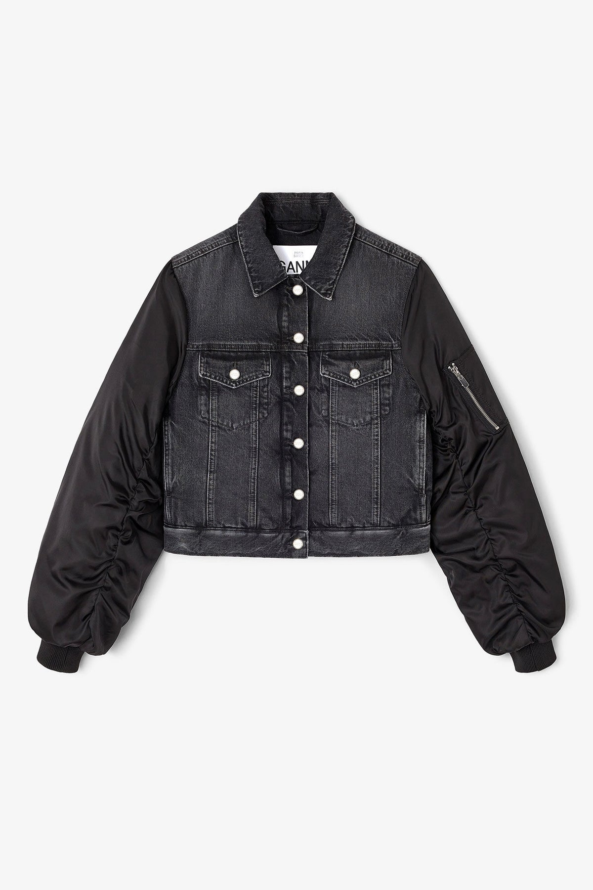 GANNI-jakke med klassisk krage og knappelukking foran. Fullført med fem lommer, kontrastfargede ermer, sølvfargede knapper og et GANNI-logomerke på ryggen.