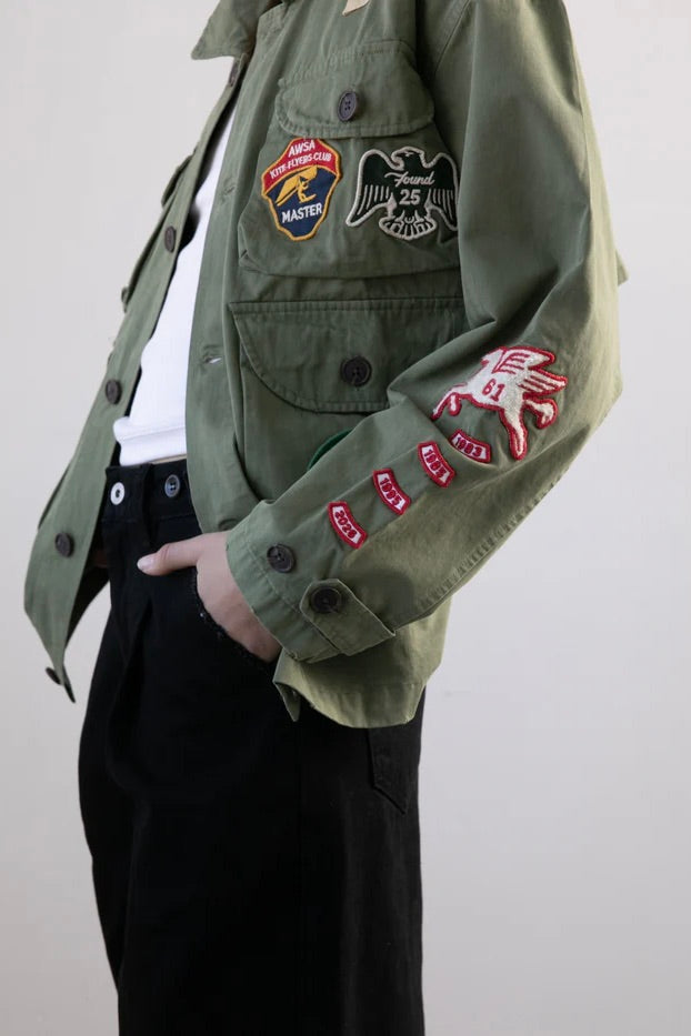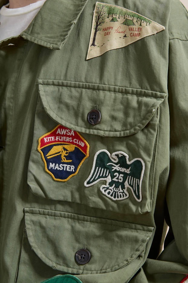 Broderte patches på bryst og ermer tilfører karakter og forteller en historie inspirert av vintage funn, fra gamle konkurranser til lokale klubber. Hver detalj gir jakken et personlig preg og et særpreg som skiller seg ut. Fire romslige cargolommer gir praktisk oppbevaring, mens den avslappede silhuetten holder designet tro mot klassisk workwear.