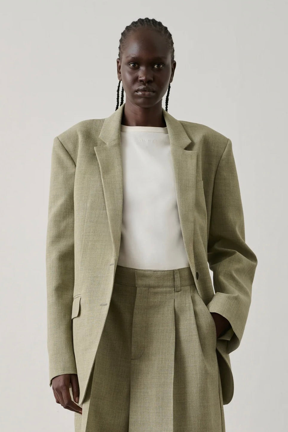 Jakken har en loose fit passform som gir god komfort og et stilrent uttrykk, perfekt både til jobb og fritid. Denne skreddersydde jakken kommer med en klassisk skreddersydd krage, praktisk knappelukking og gjennomtenkte detaljer som gjør den både funksjonell og elegant.