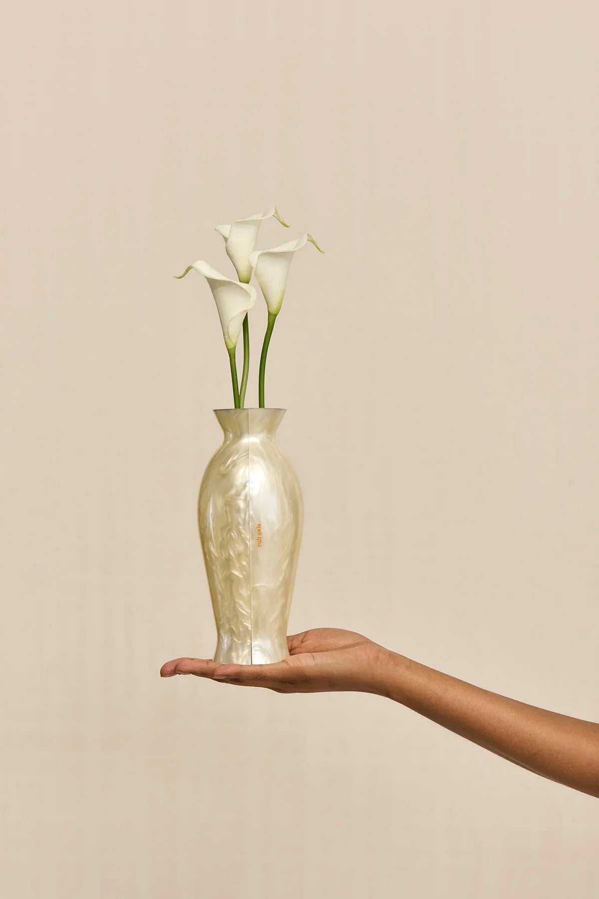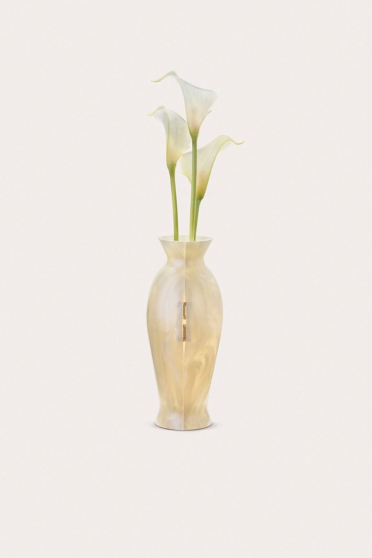 En marmorert akrylveske med calla-liljer som kan åpnes for oppbevaring og fungerer som et bærbart kunstverk. Håndlaget med omtanke, hver calla-blomst er unik.