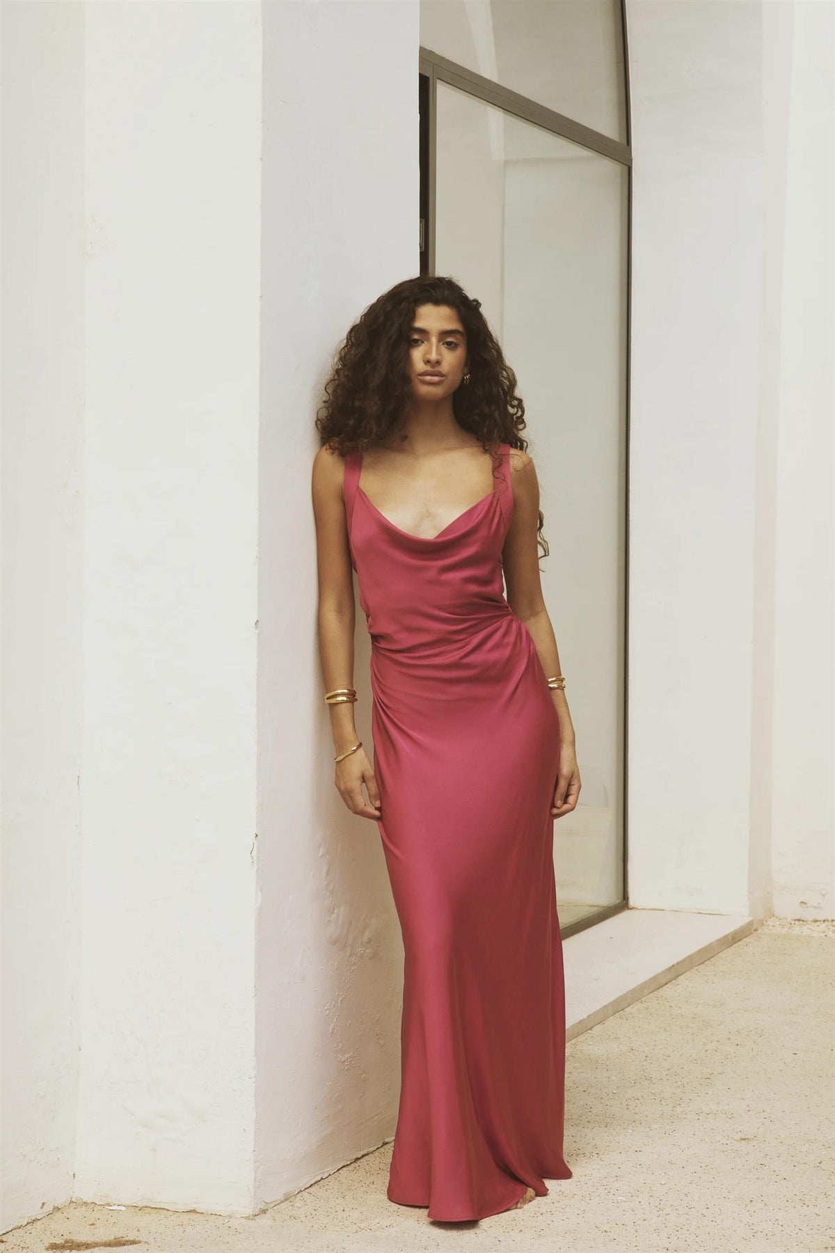 Anna Dress fra Camilla Pihl er en lang og feminin kjole med et elegant og tidløst uttrykk. Kjolen har et vakkert skjørt med lett volum som gir en flatterende silhuett og fin bevegelse. Den sofistikerte waterfall-utringningen kombinert med enkle skulderstropper gir et mykt og drapert preg, mens glidelås i sidesøm sørger for en sømløs og komfortabel passform.