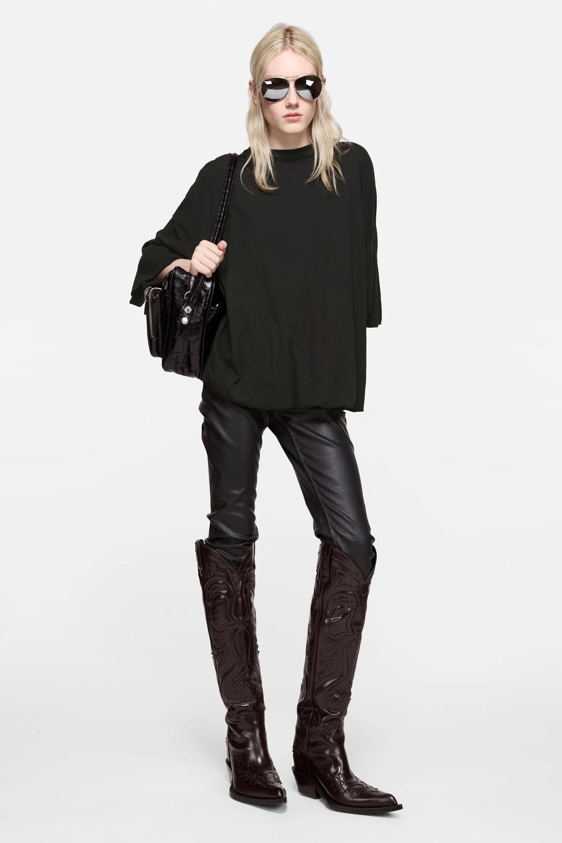 Med sin avslappede passform, senkede skuldre og lengde som går litt nedenfor hoften, kombinerer t-skjorten komfort og stil på en naturlig måte, perfekt til både jeans og skjørt for et uanstrengt, men gjennomført antrekk.