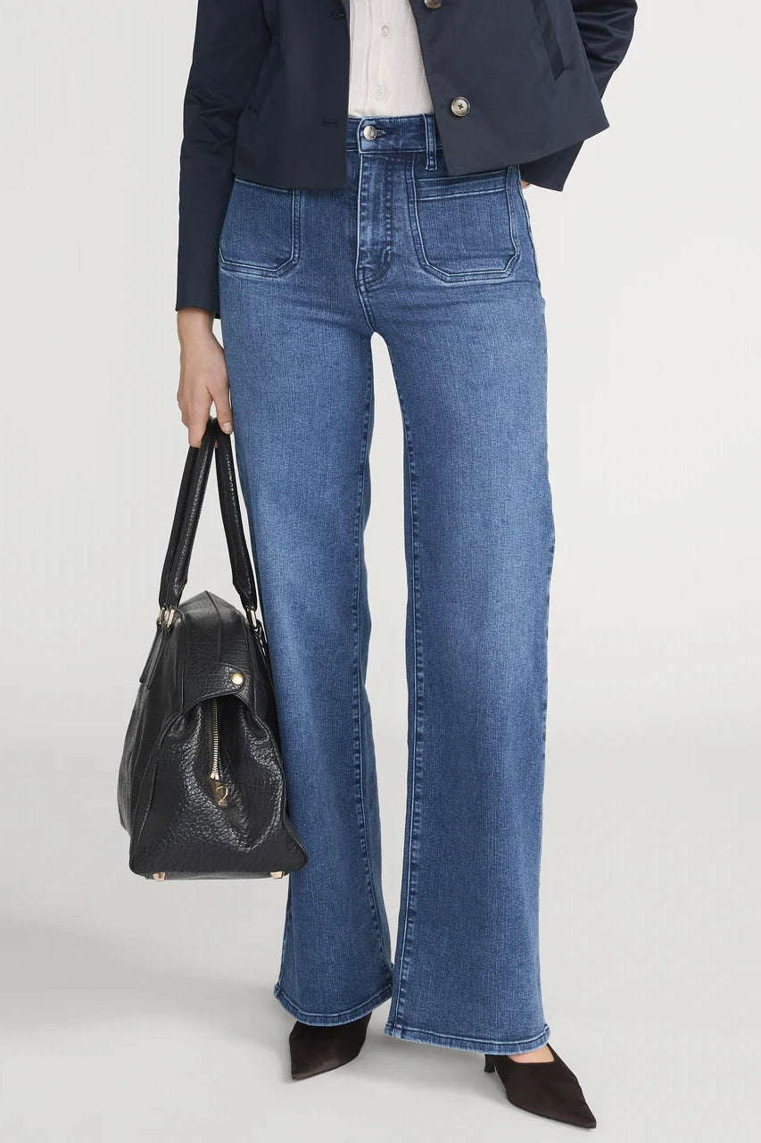 Denne bestselgende silhuetten kombinerer eleganse og komfort. Le Slim Palazzo Modernist Pocket har en flatterende høy midje, smal passform over hoftene og en subtil, vid benvidde som går helt til gulvet. Laget i en bærekraftig super-stretch bomullsblanding og fullført med stilige frontlommer, som gir et moderne og sofistikert uttrykk. Perfekt for både hverdagsbruk og mer pyntede anledninger.