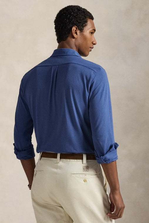 Mesh-Knit Cotton Quarter-Zip Jumper Office Blue