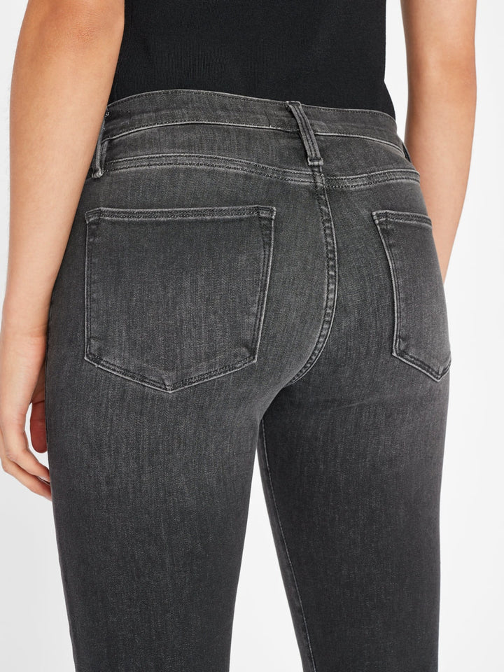 Our Bestselling Le High Straight, done in sculpting, super stretch Le Shape fabric for a perfect fit that contours your curves and won't bag out with wear. With a tailored straight leg and a high rise waist, this washed black jean is subtly fitted with a nip-in at the knees.