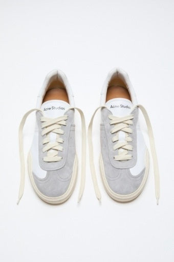 Snøresneakers med et minimalistisk design, laget av skinn og semsket skinn. Dekorert med svart logo på tungen.
