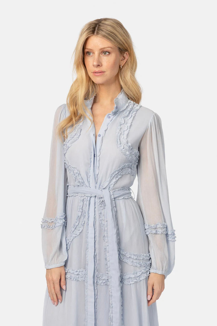 Denne nydelige maxi-kjolen med halvtransparente, voluminøse ermer som gir en romantisk touch, er det perfekte valget for bryllupsesongen.