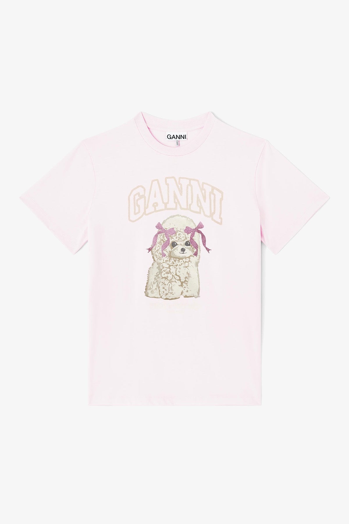 T-skjorte med rund hals og korte ermer, dekorert med GANNI-logo og et lekent grafisk puddelmotiv. En avslappet passform som gir et kult og komfortabelt uttrykk.