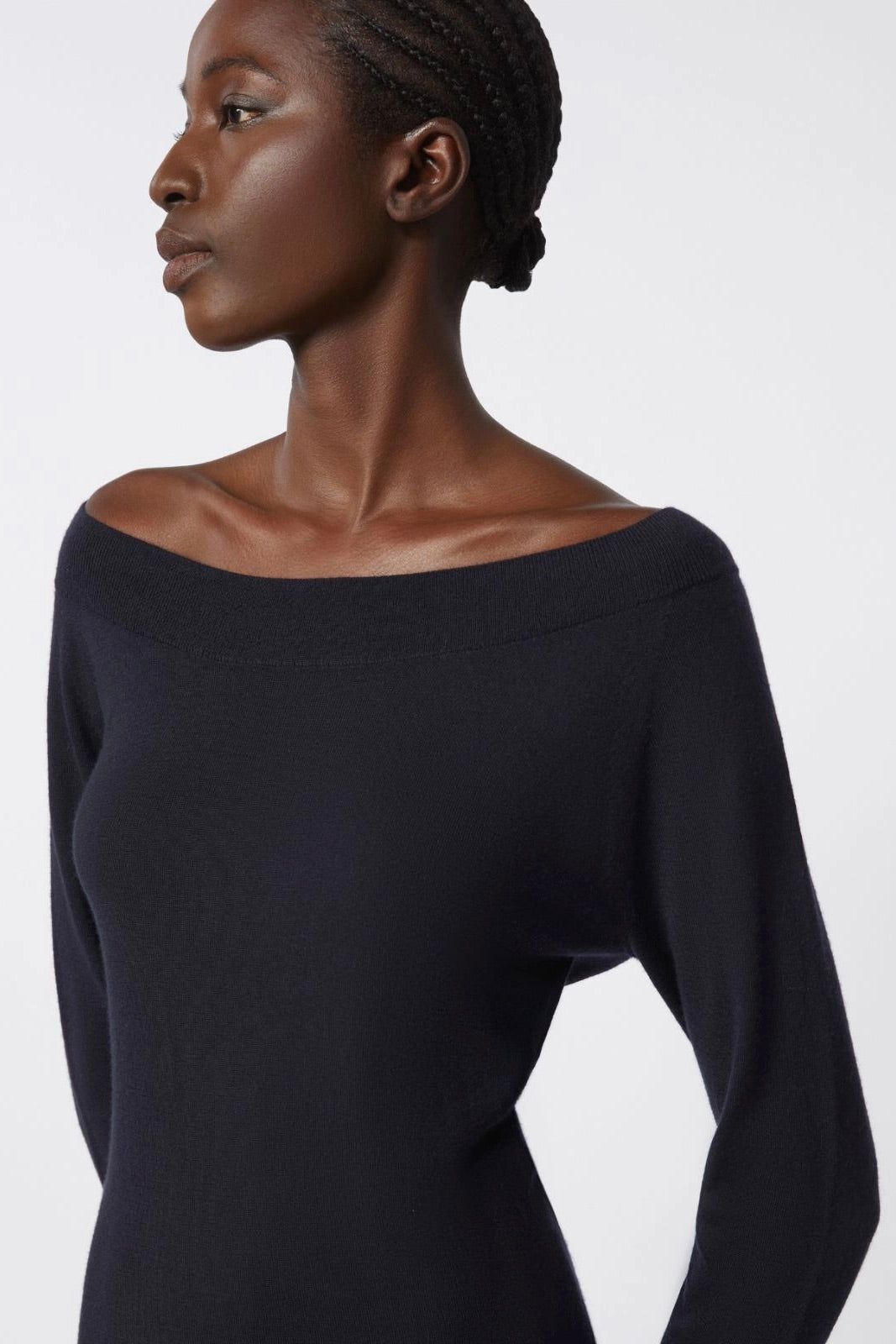 En smal passform med vid båthals og lange ermer skaper en feminin, skulpturell linje som løfter ethvert antrekk. Dette er et plagg laget for å vare. En tidløs investering du kan bruke år etter år.