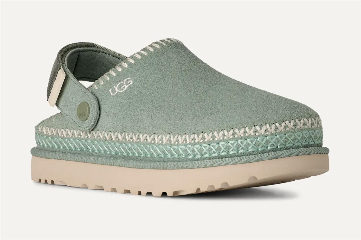 W Goldenstar Meadow Accent Clog fra UGG er dekorert med vakre, håndverksinspirerte broderier som passer like godt til en uformell rusletur som til et gjennomført moteriktig antrekk. Den justerbare stroppen har et smart dreieledd som gir to bruksalternativer, bruk den som hælstropp for ekstra støtte, eller brett den frem for enkel av- og påkledning.