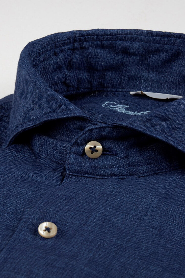 Shirt with normal fit and cutaway collar, from the brand Stenströms. The shirt is made in thin and cool linen fabric, with a clear structure.