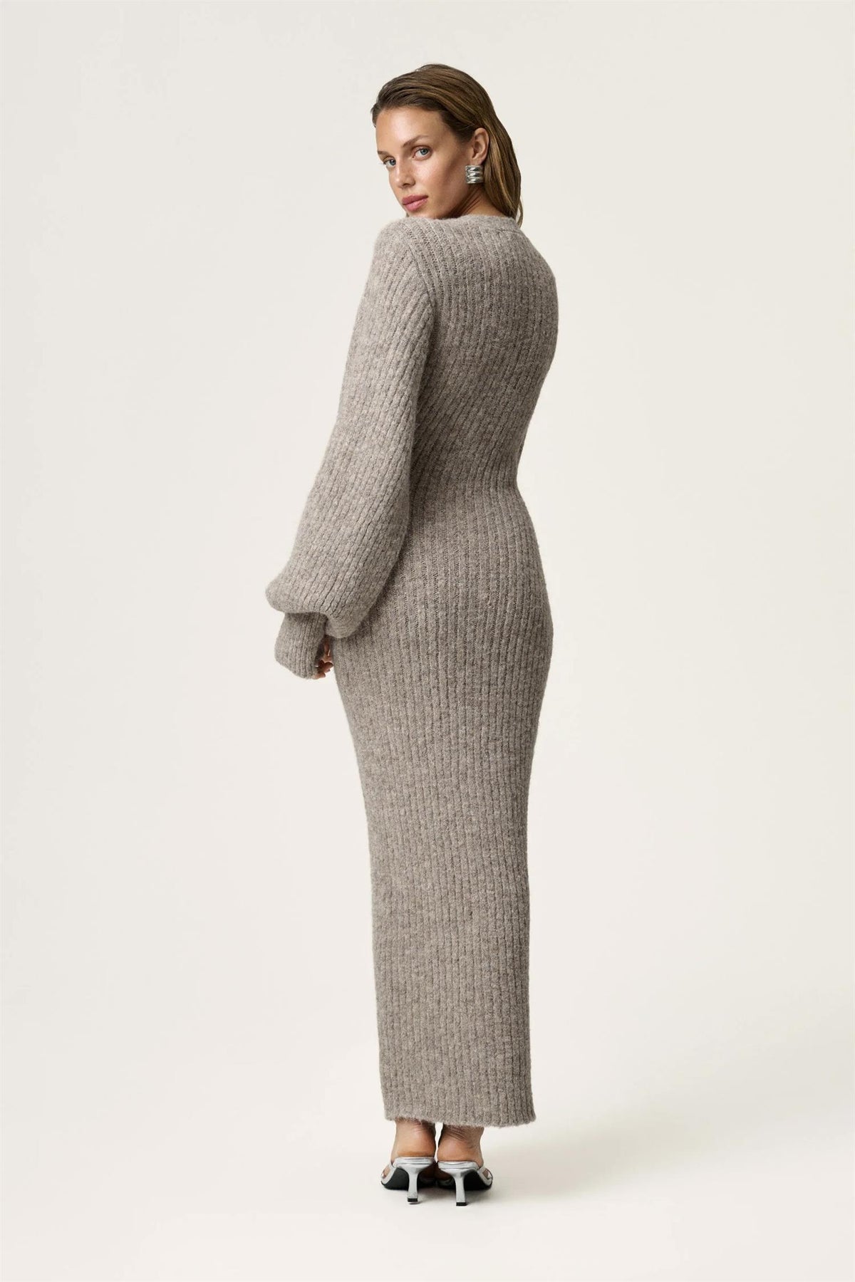 Lang kjole med timeglassformet passform, laget i et mykt, strikket materiale.