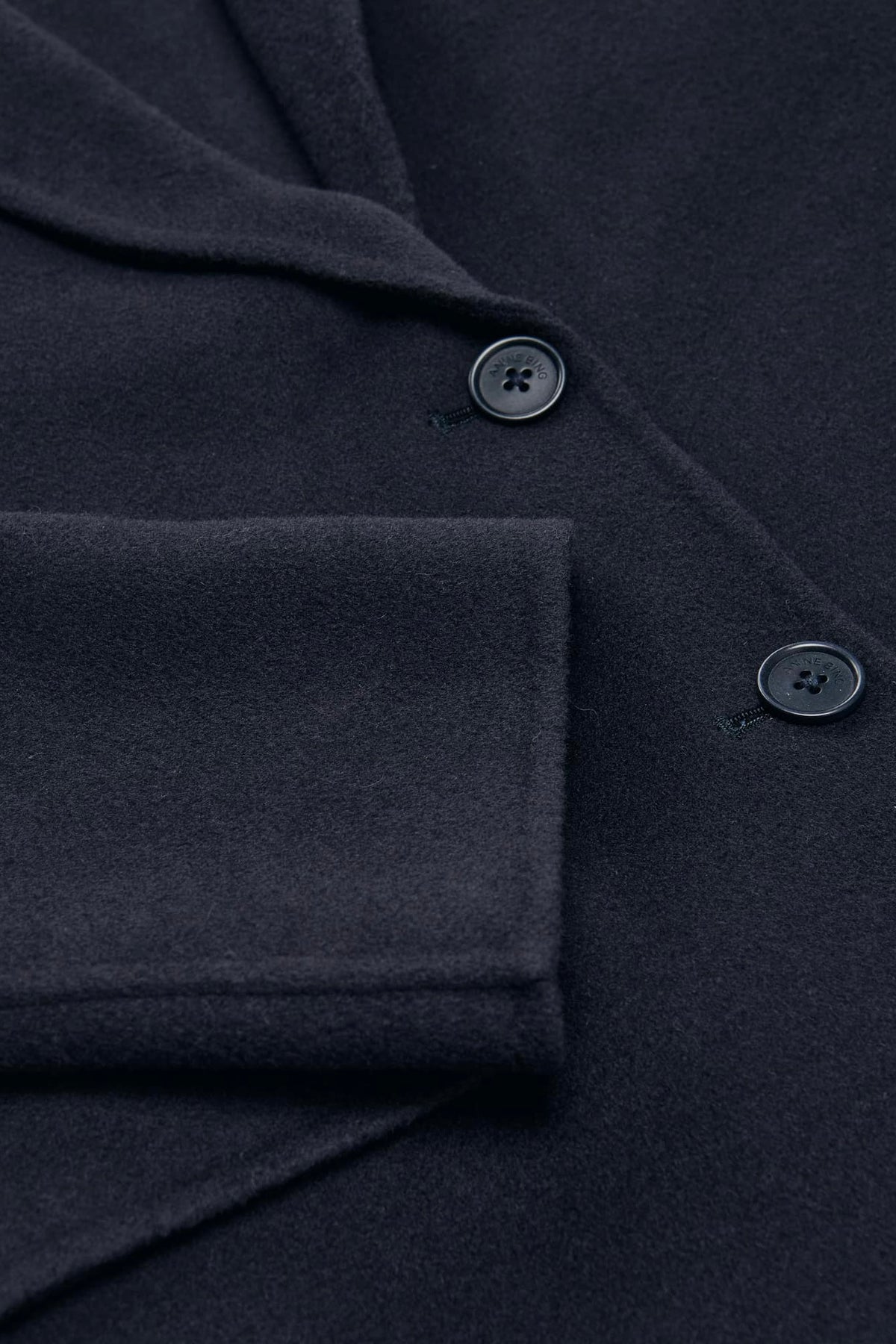 Oversized blazer i dobbeltsidig ull-kashmir med notchkrage og enkel knappestolpe. En ny farge på en klassisk ANINE BING-signatur.